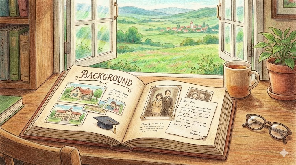 | back + ground (뒤쪽 땅) | "주인공 뒤의 무대" | (그림/사진) 배경 (시각적) → 성장 환경/스펙 (사람의 배경) → 배후 사정 (사건의 배경) |