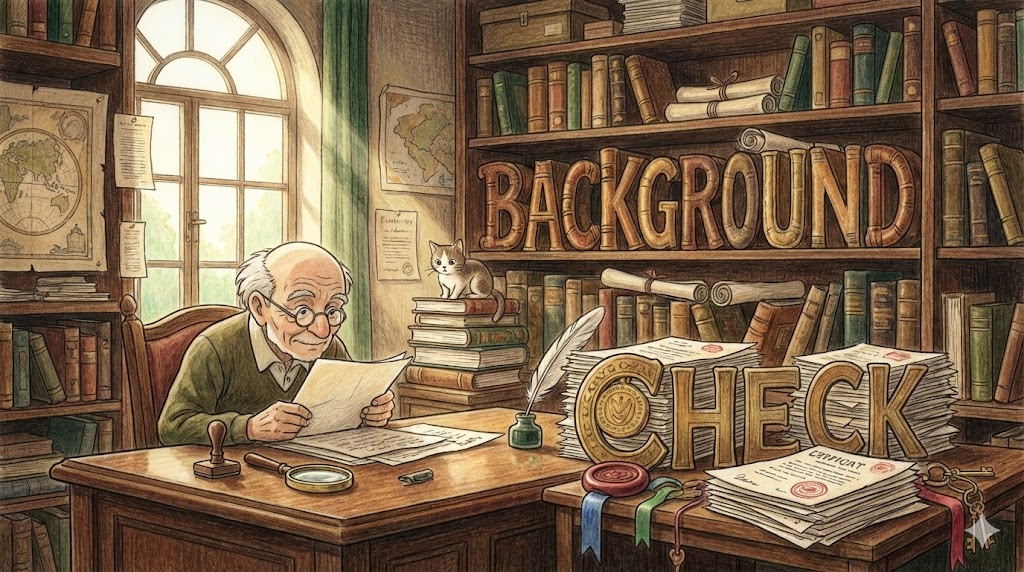 - 해석: 직원을 채용하거나 총기를 구매할 때 범죄 기록이나 과거 이력을 확인하는 절차입니다.