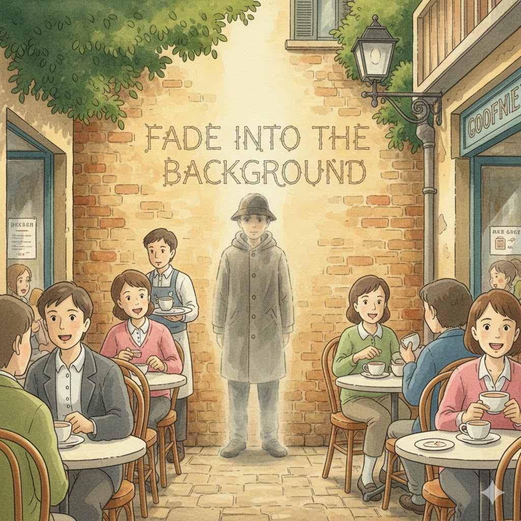 fade into the background [feɪd ˈɪntu ðə ˈbækɡraʊnd]