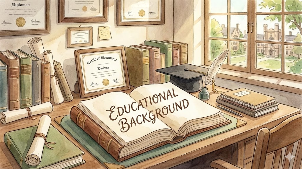 - 해석: 학교를 어디까지 다녔고 무엇을 전공했는지에 대한 교육적 이력입니다.