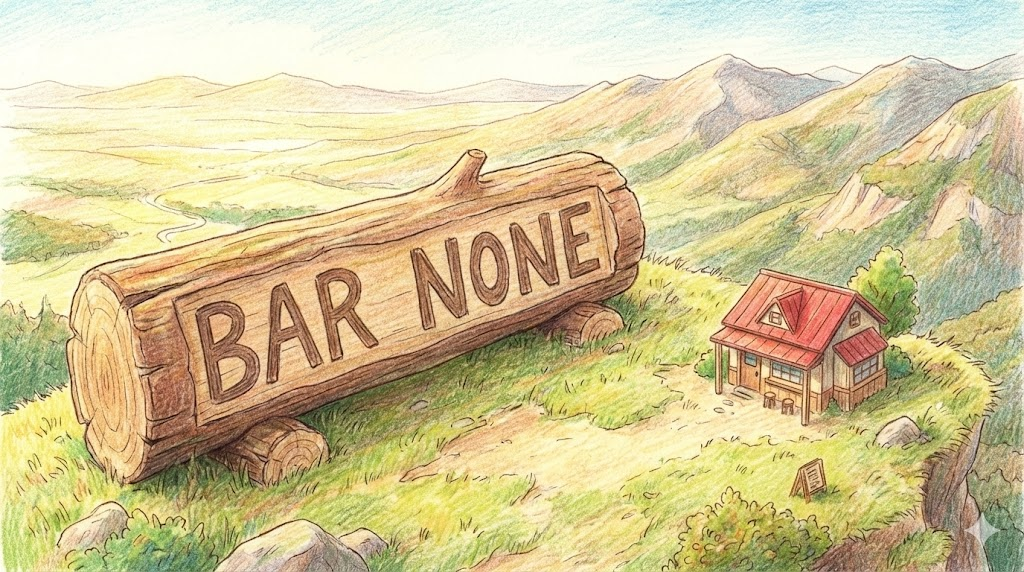 | 종합 뉘앙스 | (1) 쇠나 나무로 된 긴 막대기(초콜릿 바, 비누 바). (2) 문을 잠그거나 길을 막는 빗장(장애물/금지). (3) 술집에서 주인과 손님 사이를 막아놓은 긴 카운터(술집). (4) 법정에서 판사와 방청객을 구분하는 난간(법조계). | '긴 막대 또는 경계선' |
