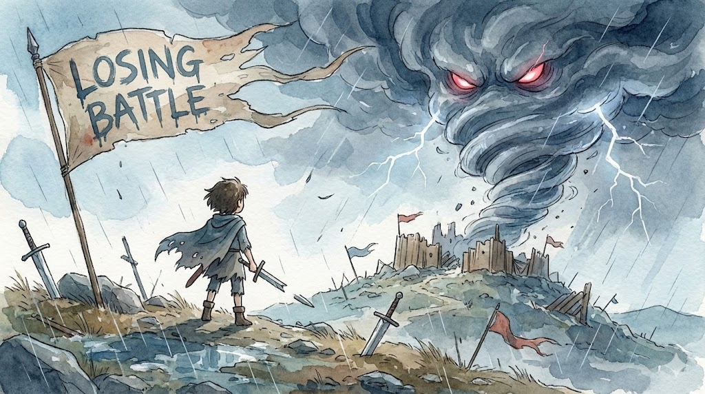 - 예문: He felt like he was fighting a losing battle against time. (그는 시간과 승산 없는 싸움을 하고 있는 것처럼 느꼈다.)