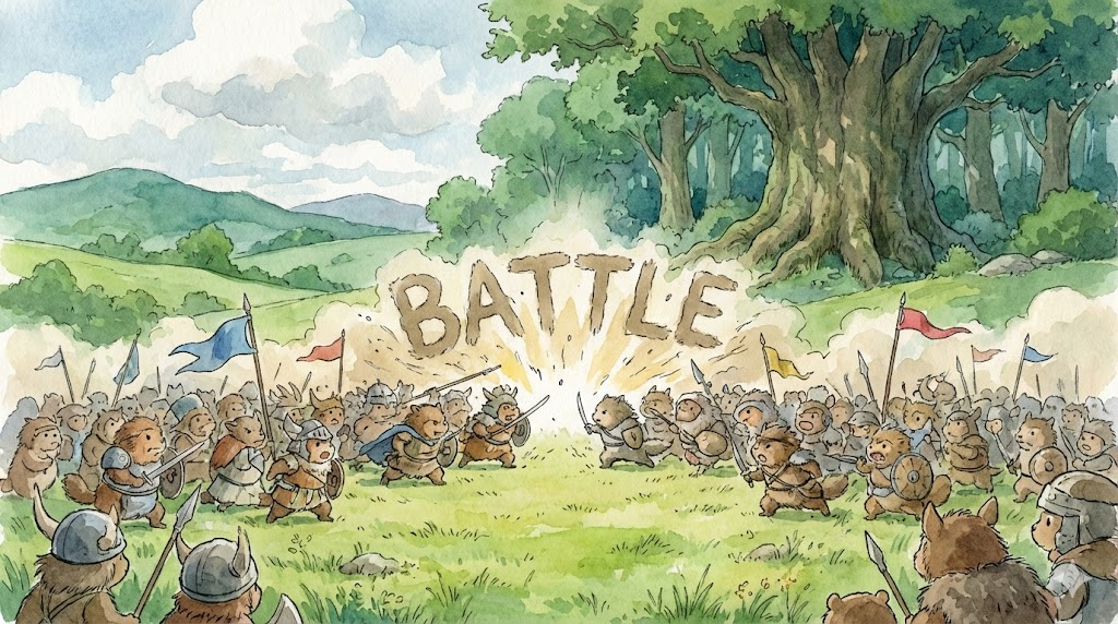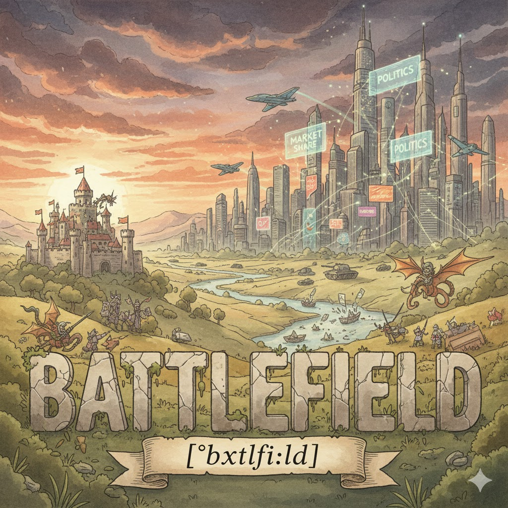 'battle'은 기본적으로 "전투", "싸움", "투쟁"이라는 뜻으로 쓰이며, 군사적인 교전뿐만 아니라 질병, 역경, 법적 분쟁 등 이기기 위해 치열하게 노력하는 모든 상황을 의미합니다. war(전쟁)가 포괄적인 개념이라면, battle은 개별적인 싸움을 뜻하는 경우가 많습니다.