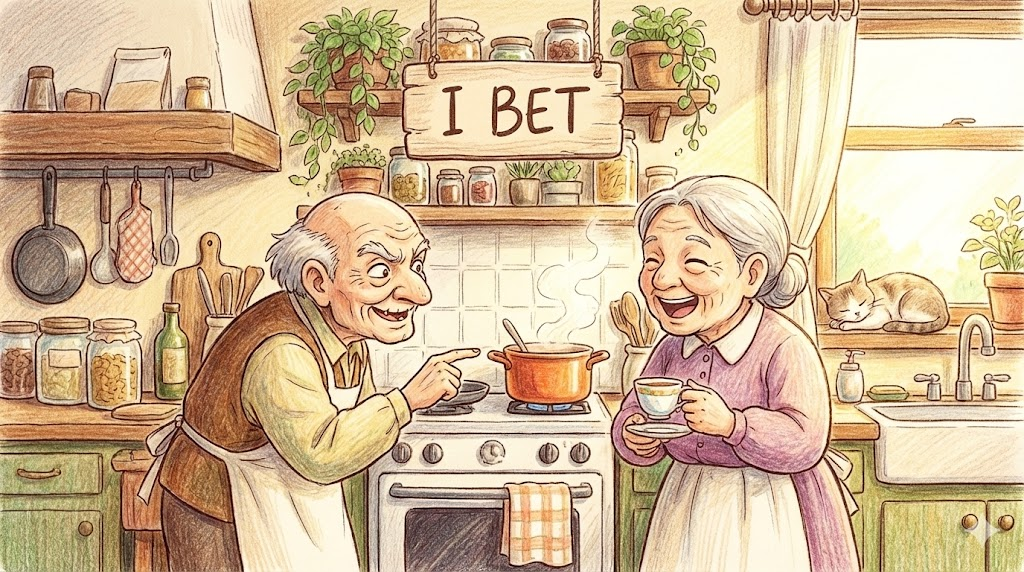| 불확실한 기원 (아마도 abet의 줄임말) | "담보를 걸다" | 내기/도박 (돈을 검) → 단언/확신 (내기할 만큼 자신 있음) → 동의/승낙 ("You bet!" - 당연하지) |
