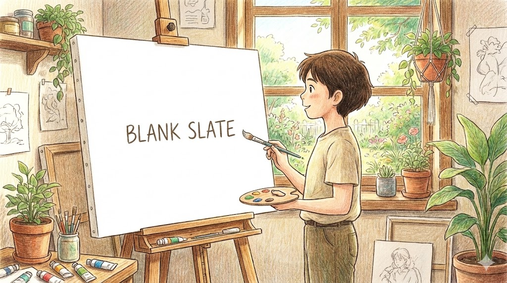 - 예문: Let's forget the past and start with a blank slate. (과거는 잊고 백지상태(새로운 마음)에서 시작하자.)