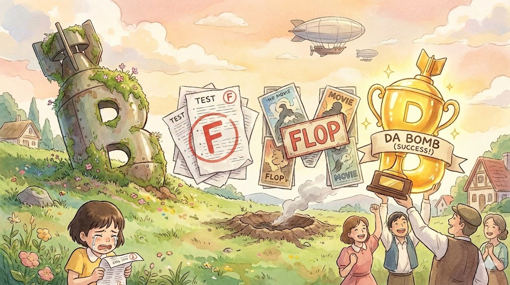 주의해야 할 점은 "bomb"의 의미가 지역에 따라 정반대일 수 있다는 것입니다.
