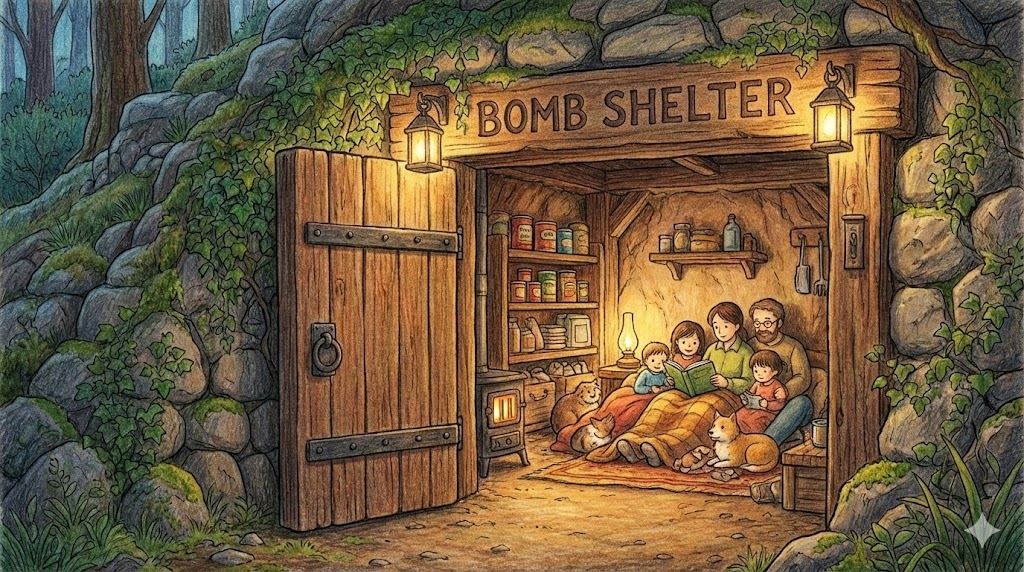 - 예문: During the war, families often hid in the bomb shelter for safety. (전쟁 중에 가족들은 안전을 위해 종종 방공호에 숨었다.)