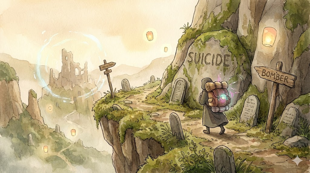 - 해석: 자신의 몸에 폭탄을 두르고 적진이나 인파 속에서 폭발시키는 테러리스트입니다.
