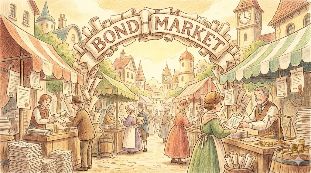 - 해석: 국채나 회사채가 거래되는 금융 시장입니다.