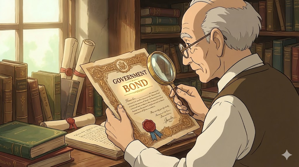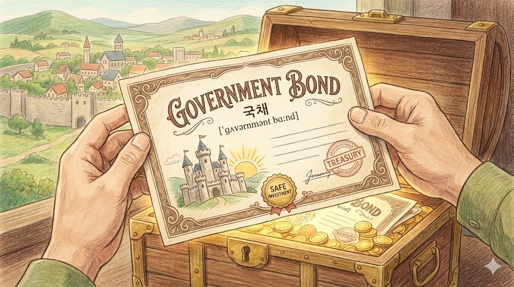 - 해석: 정부가 자금을 마련하기 위해 발행하는 채권으로, 국가가 보증하므로 안전한 투자 자산으로 꼽힙니다.