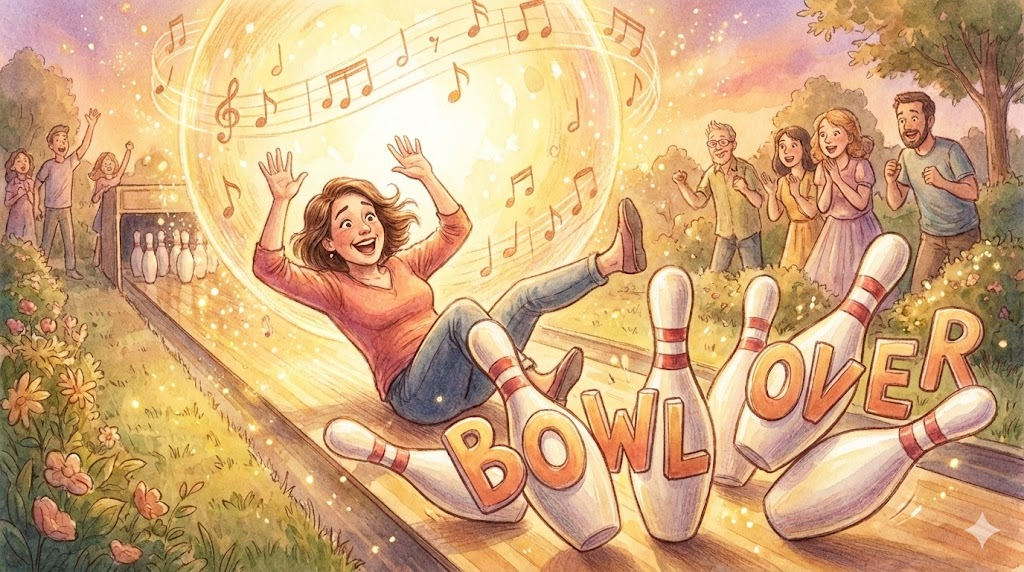 bowl over는 볼링핀을 쓰러뜨리듯 사람을 물리적으로 '넘어뜨리다'는 뜻과, 심리적으로 '크게 놀라게 하다(감동시키다)'는 뜻이 있습니다.