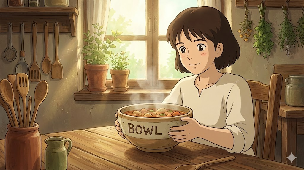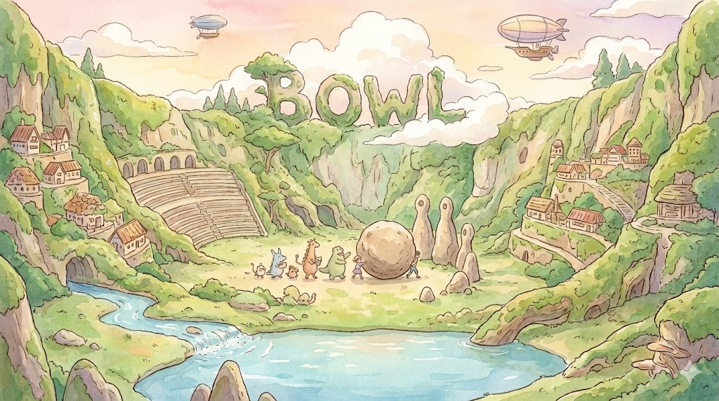 | 종합 뉘앙스 | (1) 국이나 시리얼을 담기 위해 속이 깊고 둥근 그릇(사발). (2) 그릇처럼 둥글고 오목하게 생긴 경기장(원형 경기장). (3) 둥근 공을 굴리는 행위(볼링). | '속이 깊은 둥근 그릇 또는 공 굴리기' |