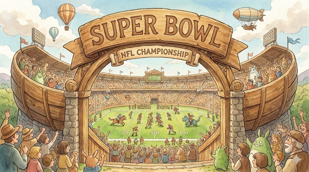 - 해석: 미국 프로 미식축구(NFL)의 결승전입니다. 단순한 경기를 넘어 미국 최대의 스포츠 축제로 여겨집니다.