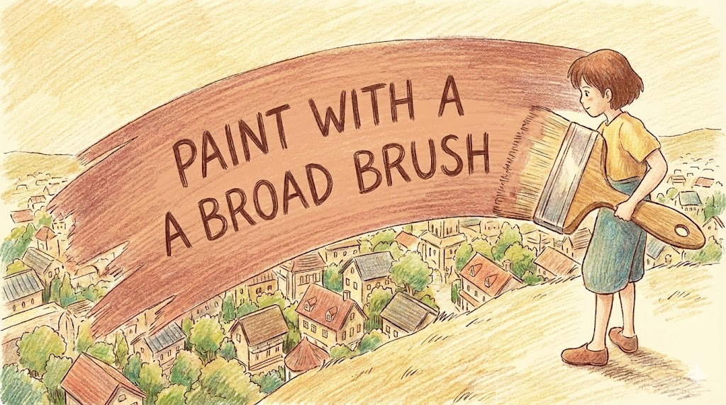 세필 붓이 아닌 넓은(Broad) 붓으로 페인트칠을 하면 세밀한 부분은 다 뭉개지고 전체가 한 가지 색으로 칠해집니다. 이처럼 개별적인 차이나 디테일은 무시하고, 어떤 집단이나 상황을 다 똑같다고 뭉뚱그려서 설명하거나 성급하게 일반화할 때 씁니다.