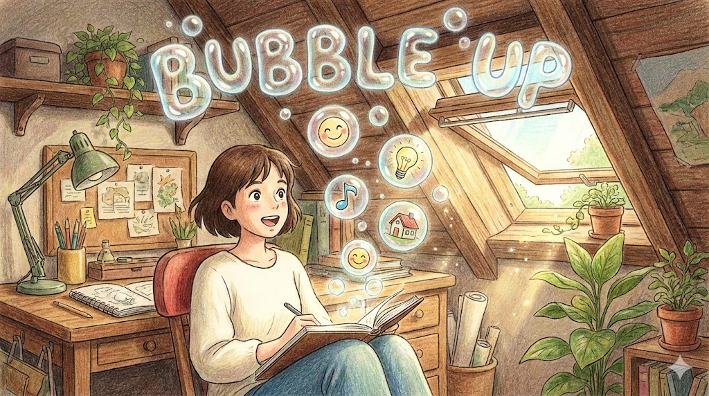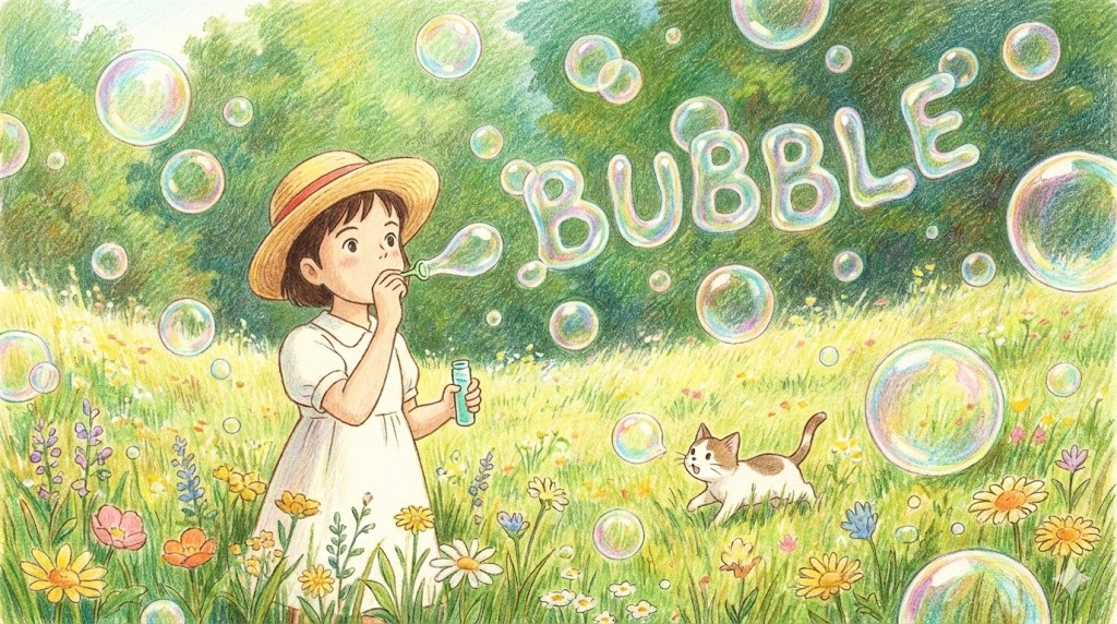 | 중세 영어 bublen (부글거리다) | "쉽게 터지는 헛된 것" | 거품/비눗방울 (물리적) → 버블/경제 거품 (경제적) → 나만의 세계/격리 (사회적) → 벅차오르다 (감정적) |
