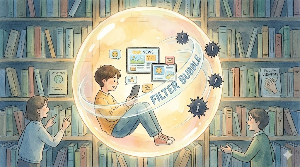 최근 수능 및 모의고사에서 IT와 사회학이 결합된 지문으로 Filter Bubble이 자주 출제됩니다. 알고리즘에 의한 "확증 편향(Confirmation Bias)" 이나 "고립(Isolation)" 을 경고하는 글의 중심 소재로 쓰입니다.