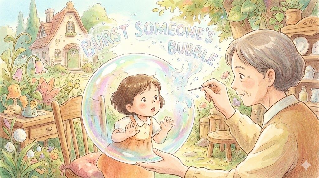 - 해석: 누군가가 가지고 있는 즐거운 착각, 희망, 환상(거품)을 터뜨려 실망하게 만드는 것입니다.