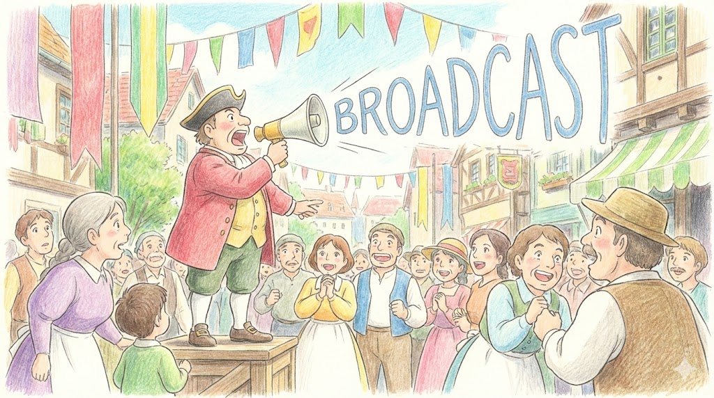 'broadcast'는 넓을 광(broad)과 던질 투(cast)가 합쳐진 단어로, 원래 농업에서 "씨앗을 널리 뿌리다"라는 뜻이었습니다. 현대에는 전파를 널리 쏘아 보내는 "방송하다", "방영하다"라는 뜻으로 가장 많이 쓰이며, 소문 등을 "널리 알리다"라는 의미로도 사용됩니다.