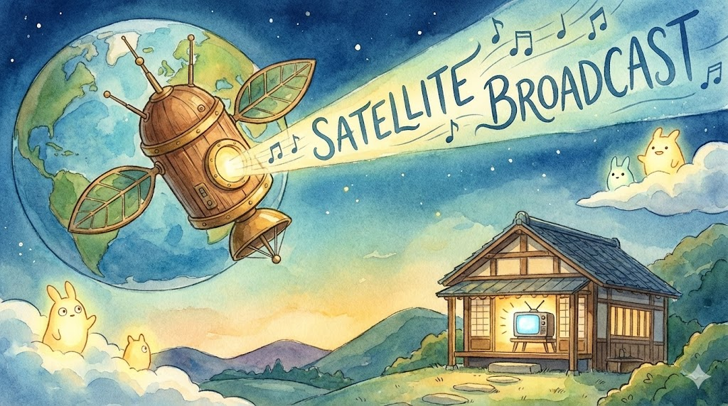 - 해석: 인공위성을 통해 전파를 수신하여 보는 방송입니다.