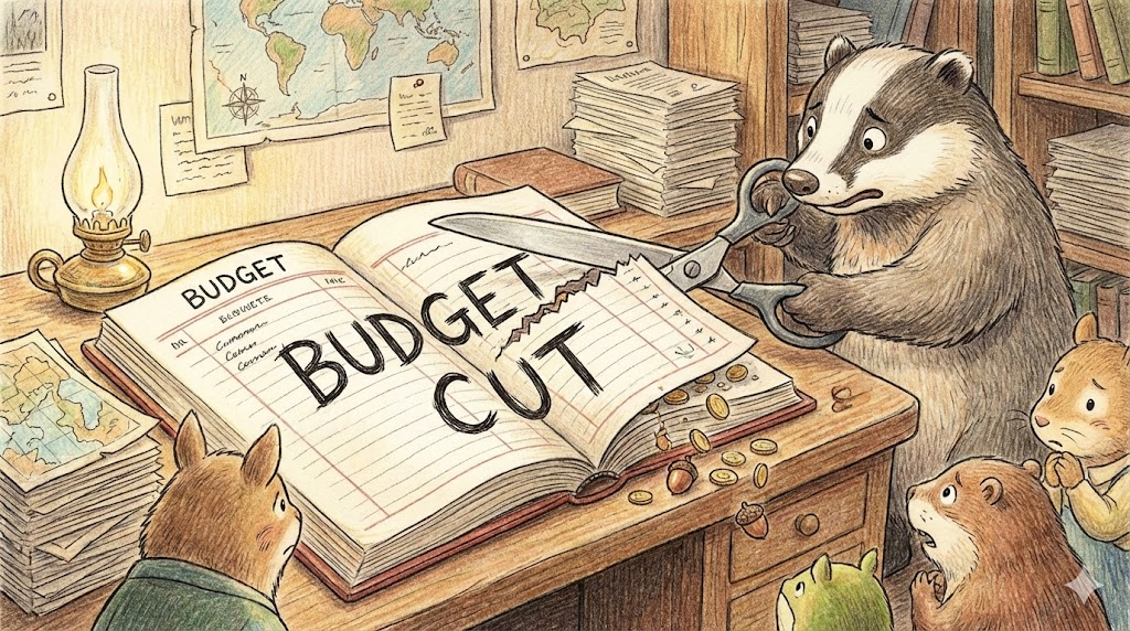 - 해석: 정부나 기업이 비용을 줄이기 위해 배정된 예산을 깎는 것입니다.