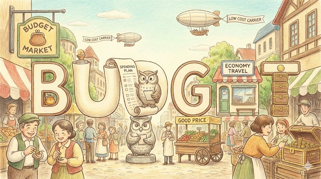 | 형용사 (A.) | 저렴한, 저가의 | 가격이 싸고 실속 있는 (Budget airline 등). | We stayed at a budget hotel. (우리는 저가/실속형 호텔에 묵었다.) |