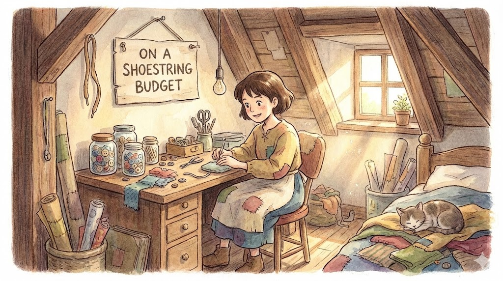 '신발 끈(Shoestring)'처럼 아주 가늘고 약한(적은) 돈으로 근근이 버티거나 무언가를 시작할 때 쓰는 재미있는 표현입니다. "On a tight budget"보다 더 열악하고 영세한 느낌을 줍니다.