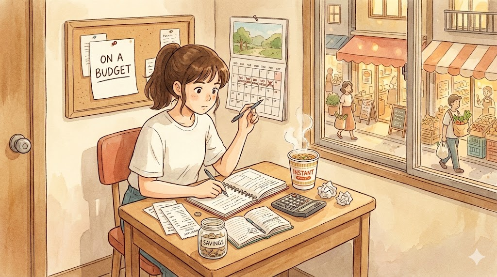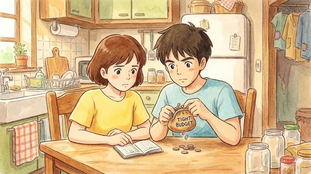 자금 계획과 절약. 돈의 계획, 알뜰함(on a budget), 삭감, 부족함(tight), 수지타산 맞추기.