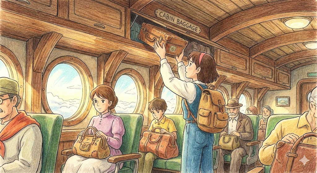 - 해석: 위탁하지 않고 승객이 직접 비행기 객실로 들고 타는 짐입니다. (Carry-on luggage)