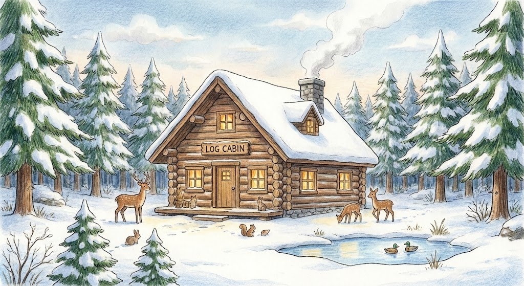 - 거주 공간: 숲속이나 시골에 있는 작고 투박한 '오두막집'입니다. 특히 log cabin은 통나무로 지은 집을 말합니다.