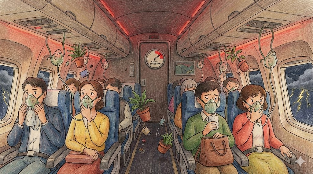 - 해석: 높은 고도를 나는 비행기 내부의 공기 압력입니다.