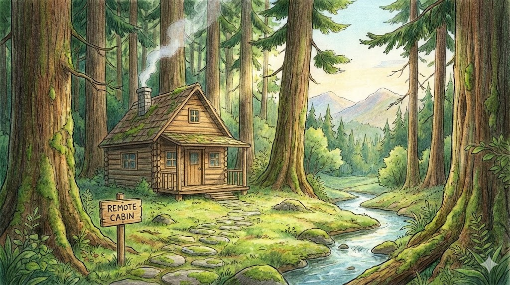 도시나 마을에서 아주 멀리 떨어져(Remote) 깊은 숲속이나 산에 있는 오두막을 말합니다. 세상과 단절되어 조용히 휴식을 취하고 싶을 때 찾는 낭만적인 장소일 수도 있고, 공포 영화에서 도움을 청할 수 없는 무서운 고립된 장소일 수도 있습니다.