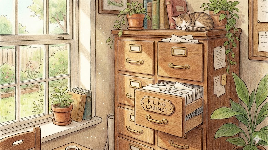 - 일상/실용문: 가구, 보관함 (filing/medicine cabinet)