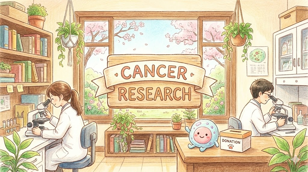 암의 원인을 밝히고 치료법을 개발하기 위한 과학적/의학적 연구 활동입니다. 많은 자선 단체나 병원에서 이 연구를 위해 기부금(Donation)을 모금합니다.