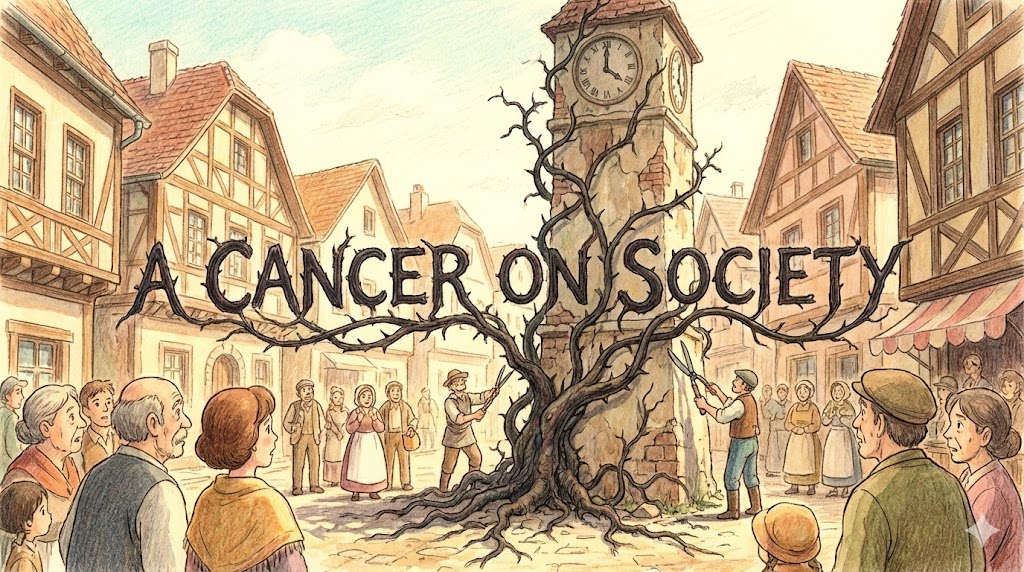 a cancer on society [ə ˈkænsər ɑːn səˈsaɪəti]