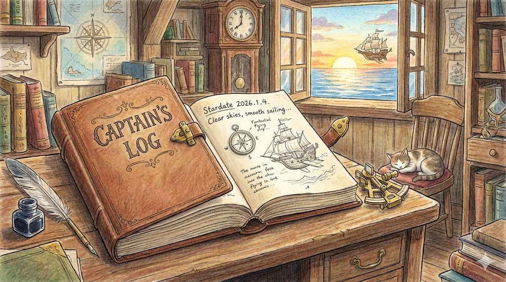 captain's log는 선장이 항해의 세부 사항을 기록하는 '항해 일지'입니다(SF 영화 <스타트렉>에서 우주선 일지로도 유명).