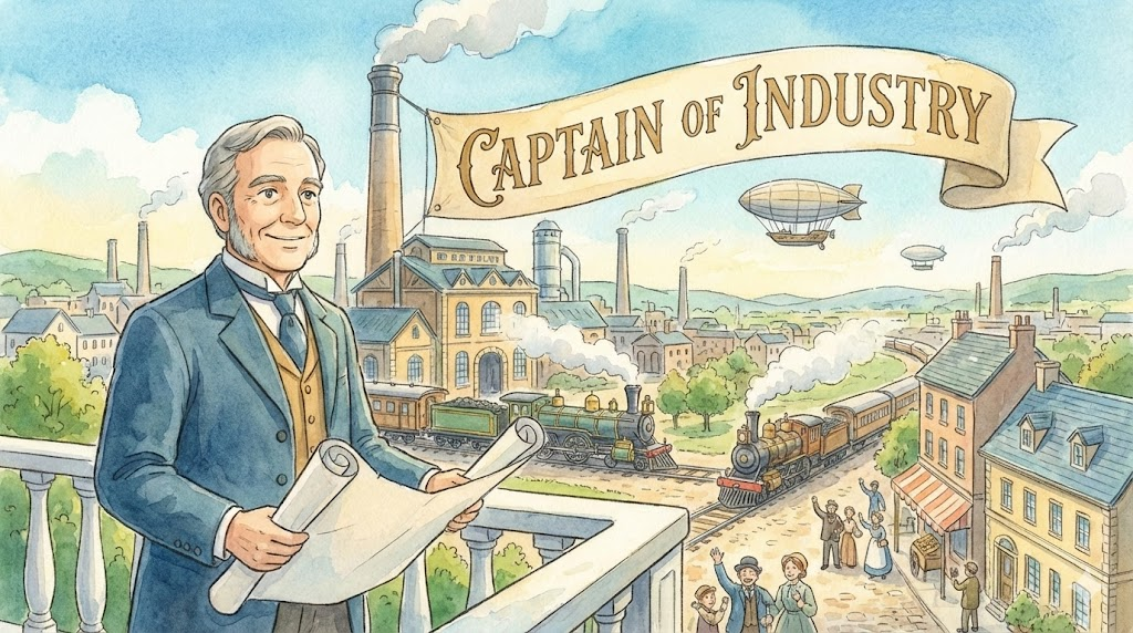 captain of industry는 산업 혁명 시기에 거대한 부와 영향력을 쌓아 사회에 기여한 '재계의 거물(산업계의 지도자)'을 뜻합니다.