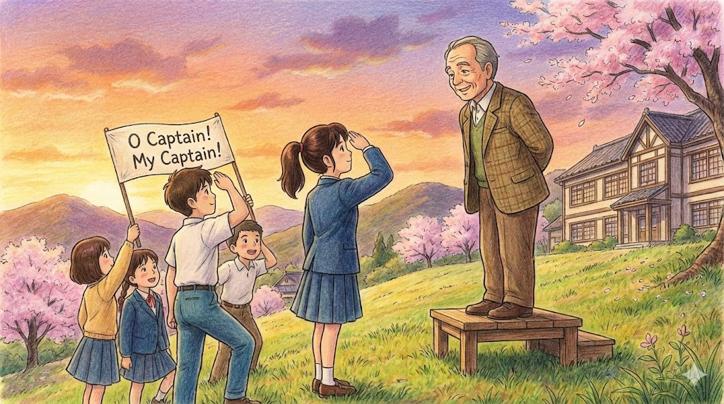 - The phrase "O Captain! My Captain!" symbolizes respect for a mentor. ("오 캡틴! 마이 캡틴!"이라는 문구는 스승에 대한 존경을 상징한다.)