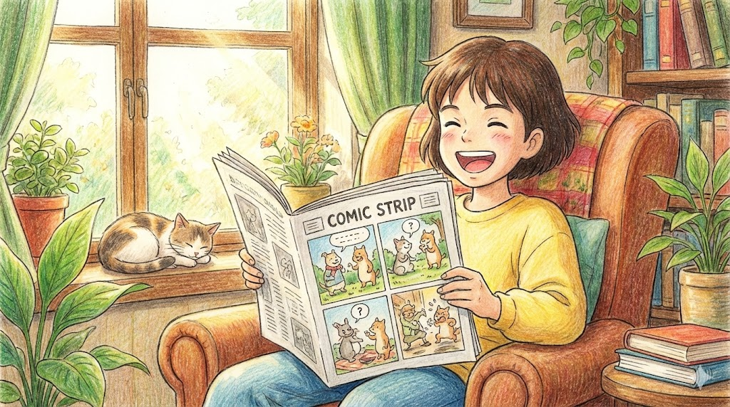 - 해석: 신문에 연재되는 3~4컷짜리 짧은 만화입니다. (Strip은 '긴 띠'라는 뜻)