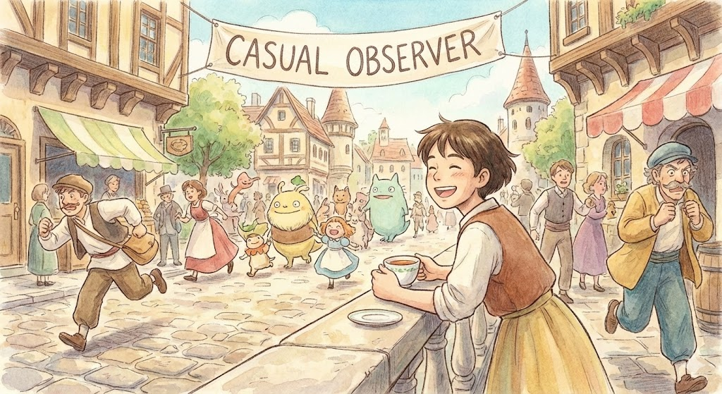 - 해석: 주의 깊게 관찰하거나 전문 지식을 가진 것이 아니라, 대충 훑어보는 평범한 관찰자입니다.