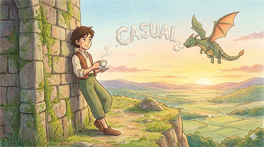 | 라틴어 casualis (우연의) | "계획되거나 심각하지 않음" | 우연한 (고어) → 임시의/비정규직의 (불규칙함) → 격식 없는 (복장/분위기) → 무심한/태평한 (태도) |