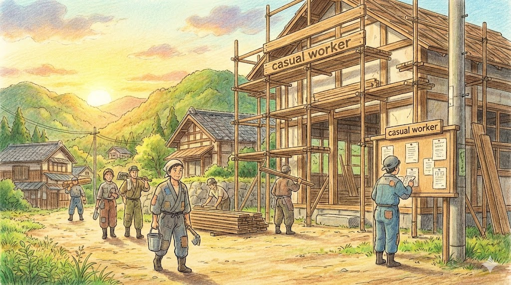 - 해석: 정규직이 아니라 필요할 때마다 불려가서 일하는 비정규직 노동자입니다. (Casual labor라고도 함)