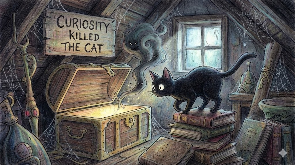 - 해석: 고양이는 호기심이 많아 위험한 곳에 잘 들어가는데, 사람에게도 너무 꼬치꼬치 캐묻거나 위험한 일에 관심을 두지 말라고 경고할 때 쓰는 속담입니다.