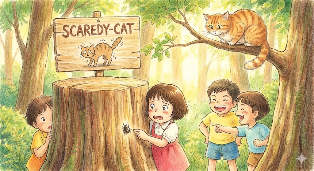 - Don't be such a scaredy-cat; it's just a spider. (겁쟁이처럼 굴지 마; 그냥 거미일 뿐이야.)