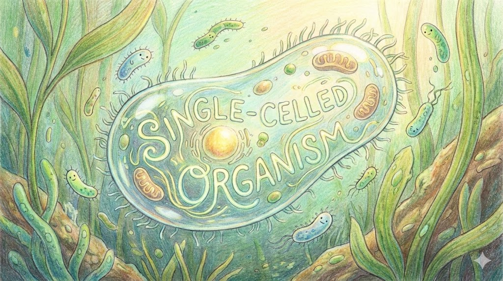 single-celled organism은 몸이 세포 하나로만 이루어진 아메바 같은 '단세포 생물' 입니다.