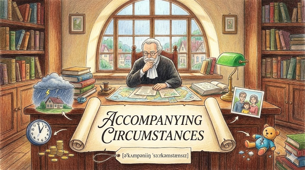 accompanying circumstances는 어떤 사건이 일어날 때 주변에서 같이 벌어지는 '부수적인 상황(제반 사정)' 입니다.