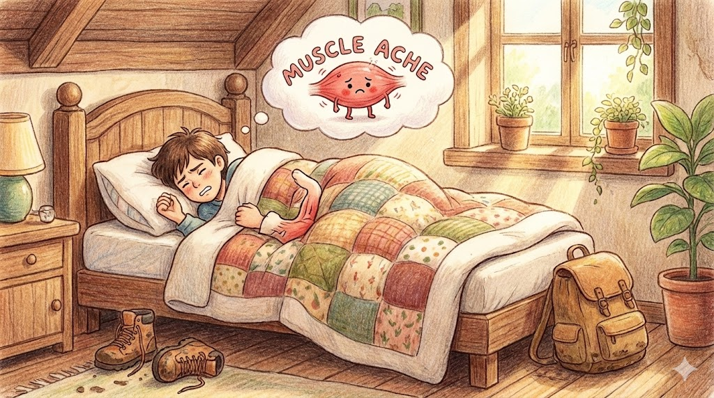 - 해석: 운동 후나 감기 몸살 등으로 근육이 쑤시는 증상입니다.