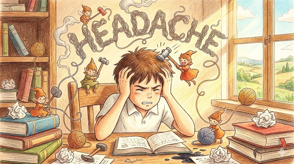 - 해석: 머리가 아픈 증상이지만, 회화에서는 해결하기 힘든 "골칫거리" 나 "성가신 일" 을 비유할 때 매우 자주 쓰입니다.