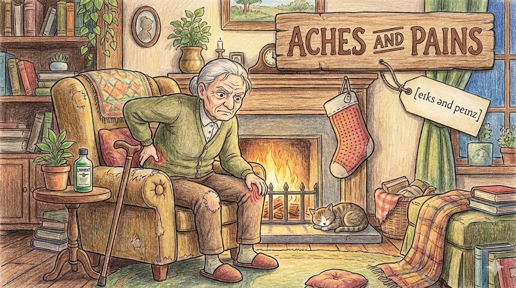 aches and pains [eɪks ənd peɪnz]
