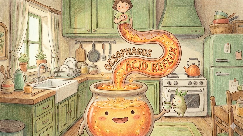 위장에 있어야 할 강한 산이 식도(목구멍)로 거꾸로 올라오는 증상을 말합니다. 가슴이 타는 듯한 통증(Heartburn)을 유발하며, 현대인들이 스트레스나 야식 때문에 자주 겪는 흔한 질환입니다.