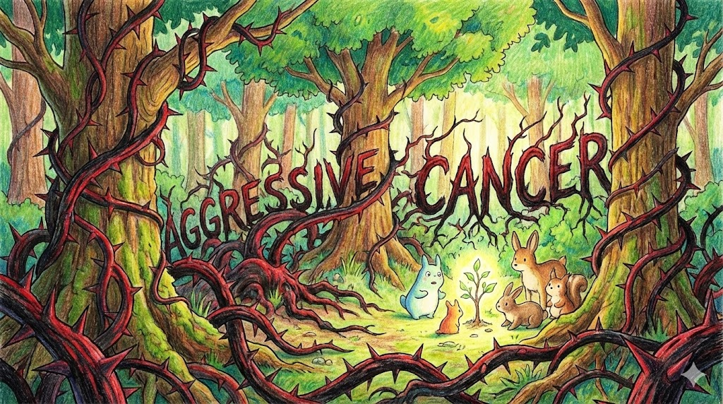 암세포가 천천히 자라는 게 아니라, 아주 빠른 속도로 커지고 다른 장기로 전이도 잘 되는 무서운 성질을 가졌을 때 씁니다. 의사가 "Aggressive하다"고 하면 상황이 꽤 심각하고 긴급하다는 뜻입니다.